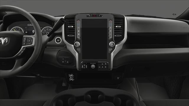 Inside the Crew Cab, the Tradesman Level 2 Equipment Group upgrades the cabin with Uconnect 5 NAV on a 12.0-inch touchscreen, dual-zone automatic climate control, carpeted flooring, rear power sliding window, multiple power outlets, and enhanced connectivity. Driver-assist and safety technology includes Adaptive Cruise Control with Stop, Active Lane Management, Drowsy Driver Detection, Forward Collision Warning Plus, and ParkSense front and rear park assist for added confidence in tight spaces.