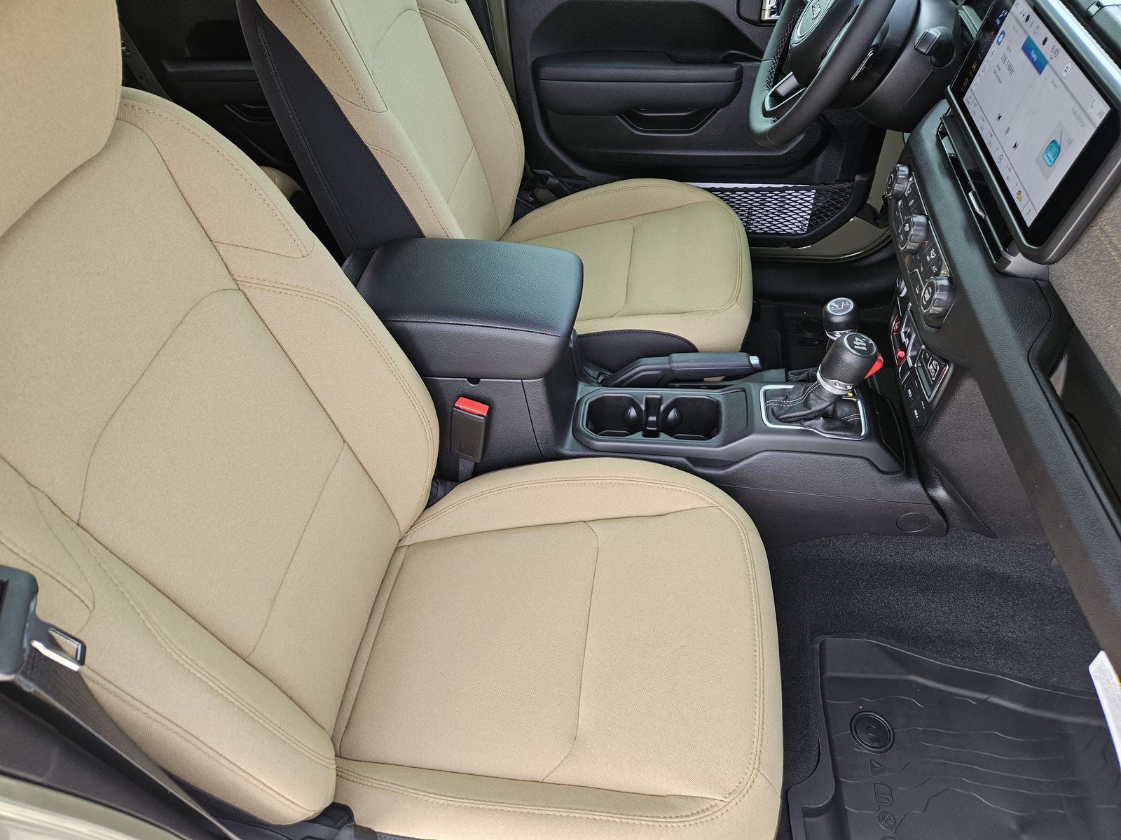 Inside, the Wrangler combines durable materials with modern connectivity. The large Uconnect 5 system with a 12.3-inch touchscreen provides easy access to media, navigation, and smartphone integration while additional comfort features improve everyday usability.
