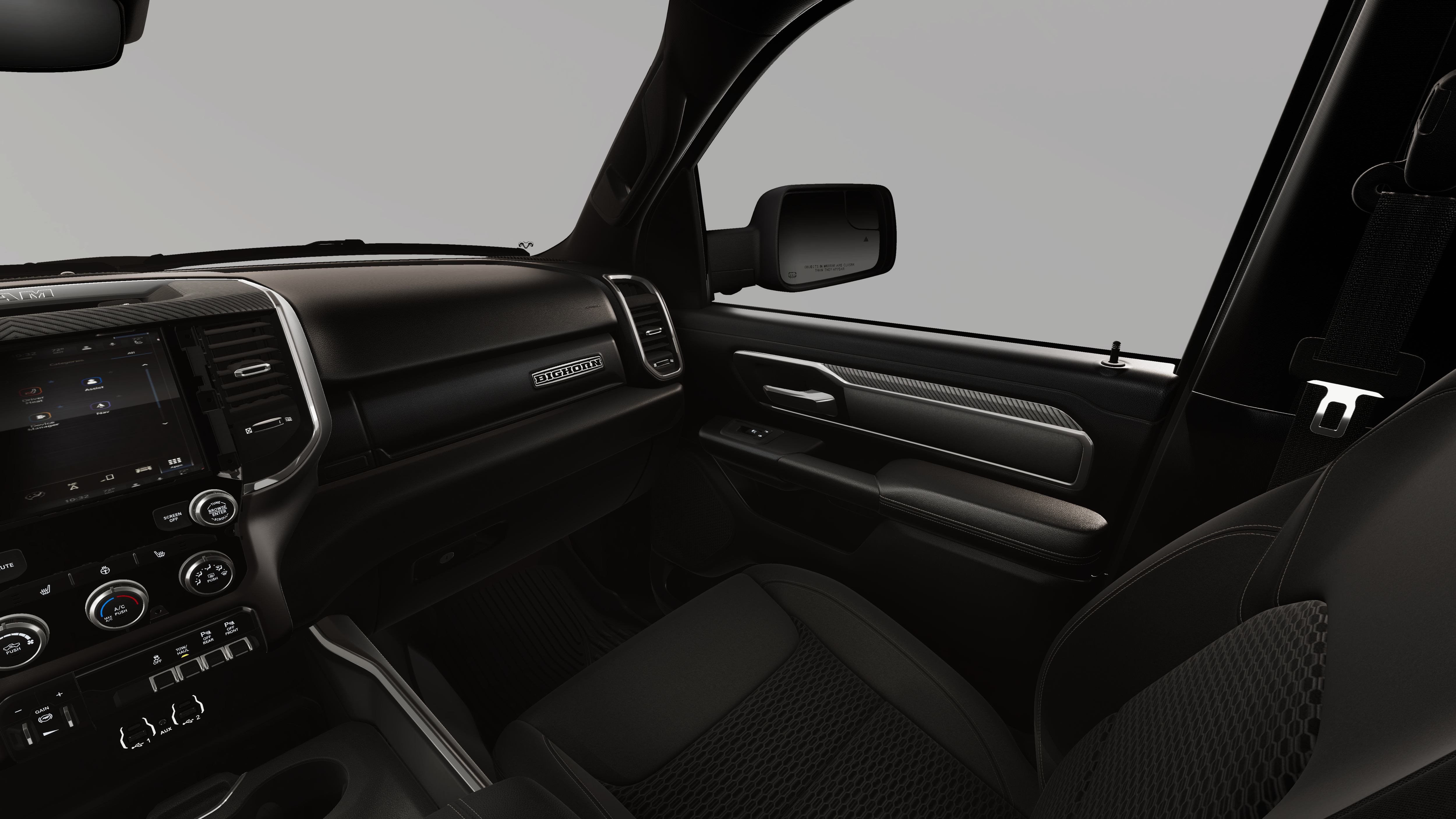 This 2026 Ram 1500 Big Horn/Lone Star comes nicely equipped with the following Bed Utility Group (Exterior 115V AC Outlet, MOPAR 4 Adjustable Cargo Tie-Down Hooks, MOPAR Spray in Bedliner, and Pick-Up Box Lighting), Big Horn Level 1 Equipment Group (115V Auxiliary Power Outlet, 2nd Row in Floor Storage Bins, 3 Rear Seat Head Restraints, 4 Way Front Headrests, 400W Inverter, Auto Power-Folding Mirrors, Auto-Dimming Exterior Driver Mirror, Auto-Dimming Rear-View Mirror, Black Exterior Mirrors, Black Premium Power Mirrors, Body Color Fender Flares, Bucket Seats, Center Console Parts Module, Convex Wide-Angle Exterior Mirror Insert, Deluxe Cloth Bucket Seats, Exterior Mirrors Courtesy Lamps, Exterior Mirrors with Heating Element, Exterior Mirrors with Supplemental Signals, Front Seat Back Map Pockets, Full Length Floor Console, Glove Box Lamp, Heated Front Seats, Heated Steering Wheel, Leather Wrapped Steering Wheel, Manual Adjust 4-Way Front Passenger Seat, Power 2-Way Driver Lumbar Adjust, Power Adjust 8-Way Driver Seat, Power Adjustable Pedals, Rear 60/40 Folding Seat, Rear Center Armrest, Rear Dome with on/Off Switch Lamp, Rear Power Sliding Window, Rear Window Defroster, SiriusXM Radio Service, SiriusXM Satellite Radio, Steering Wheel Mounted Audio Controls, Sun Visors with Illuminated Vanity Mirrors, and Universal Garage Door Opener), Quick Order Package 21Z Big Horn, 33 Gallon Fuel Tank, 4-Wheel Disc Brakes, 48V Belt Starter Generator, 4G LTE Wi-Fi Hot Spot, 6 Speakers, ABS brakes, Air Conditioning, Alloy wheels, AM/FM radio, Apple CarPlay, Apple CarPlay/Android Auto, Auto High-beam Headlights, Brake assist, Bumpers: chrome, Cloth Bucket Seats, Compass, Connectivity - US/Canada, Delay-off headlights, Driver door bin, Dual front impact airbags, Dual front side impact airbags, Electronic Stability Control, Front anti-roll bar, Front Bucket Seats, Front Center Armrest w/Storage, Front fog lights, Front reading lights, Front wheel independent suspension, Fully automatic headlights, Global Telematics Box Module, Google Android Auto, GPS Antenna Input, Heated door mirrors, Illuminated entry, Integrated Center Stack Radio, Integrated Voice Command with Bluetooth®, Low tire pressure warning, Manual Adjust 4-Way Driver Seat, Manual Folding Exterior Mirrors, Manufacturer's Statement of Origin, MOPAR Front and Rear Rubber Floor Mats, Occupant sensing airbag, Outside temperature display, Overhead airbag, Overhead console, Panic alarm, ParkView Rear Back-Up Camera, Passenger door bin, Passenger vanity mirror, Power door mirrors, Power steering, Power windows, Radio data system, Radio: Uconnect 5 W with 8.4 Display, RAM Grille Badge - Chrome, Rear anti-roll bar, Rear step bumper, Remote keyless entry, Speed control, Supplier Part Tracking (J-1), Tachometer, Telescoping steering wheel, Tilt steering wheel, Traction control, Trailer Brake Control, Trip computer, USB Host Flip, Variably intermittent wipers, Voltmeter, and Wheel to Wheel Side Steps.