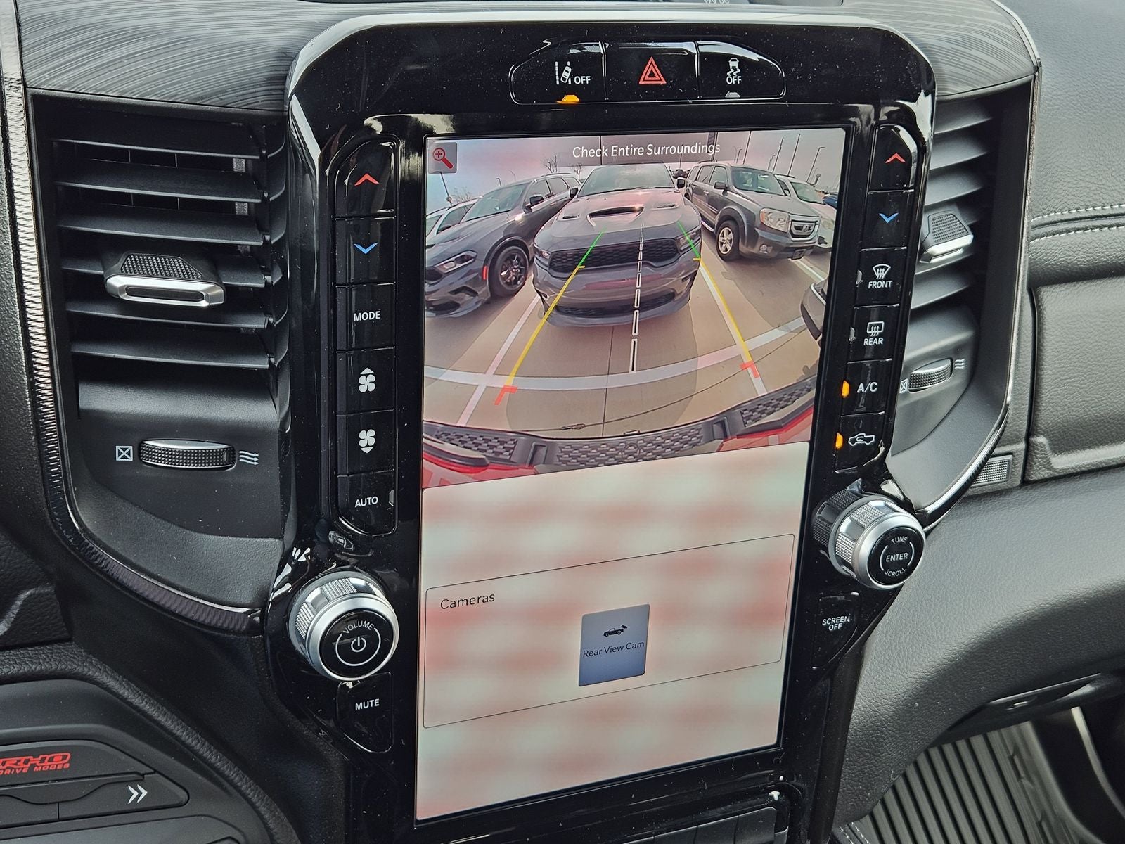 This 2026 Ram 1500 RHO comes nicely equipped with the following Quick Order Package 22Y RHO, 10 Speakers, 3.92 Rear Axle Ratio, 4-Wheel Disc Brakes, 4G LTE Wi-Fi Hot Spot, ABS brakes, Adaptive suspension, Adjustable pedals, Air Conditioning, Alloy wheels, AM/FM radio, Apple CarPlay/Android Auto, Auto High-beam Headlights, Auto Power-Folding Mirrors, Auto-dimming door mirrors, Auto-Dimming Exterior Driver Mirror, Auto-dimming Rear-View mirror, Automatic temperature control, Brake assist, Compass, Connected Travel and Traffic Services, Connectivity - US/Canada, Delay-off headlights, Disassociated Touchscreen Display, Driver door bin, Driver vanity mirror, Dual front impact airbags, Dual front side impact airbags, Electronic Stability Control, Exterior Mirrors Courtesy Lamps, Exterior Mirrors with Heating Element, Exterior Mirrors with Supplemental Signals, Exterior Parking Camera Rear, Flareside Box, Front anti-roll bar, Front Bucket Seats, Front Center Armrest w/Storage, Front dual zone A/C, Front fog lights, Front License Plate Bracket, Front reading lights, Front wheel independent suspension, Fully automatic headlights, Garage door transmitter, GPS Navigation, HD Radio, Heated door mirrors, Heated front seats, Heated steering wheel, Illuminated entry, Integrated Center Stack Radio, Integrated Voice Command with Bluetooth®, Leather Shift Knob, Leather steering wheel, Leather Trimmed Bucket Seats, Low tire pressure warning, Manufacturer's Statement of Origin, MOPAR Off-Road Style Running Boards, Navigation System, Occupant sensing airbag, Outside temperature display, Overhead airbag, Overhead console, Panic alarm, Passenger door bin, Passenger vanity mirror, Power door mirrors, Power driver seat, Power passenger seat, Power steering, Power windows, Radio data system, Radio: Uconnect 5 Navigation with 12.0 Display, Rear reading lights, Rear seat center armrest, Rear step bumper, Rear window defroster, Remote keyless entry, Security system, SiriusXM Radio Service, Speed control, Split folding rear seat, Sport steering wheel, Steering wheel mounted audio controls, Tachometer, Telescoping steering wheel, Tilt steering wheel, Traction control, Trip computer, Turn signal indicator mirrors, USB Host Flip, Variably intermittent wipers, Voltmeter, and Wheels: 18 x 9 Black Paint/Polish Aluminum.