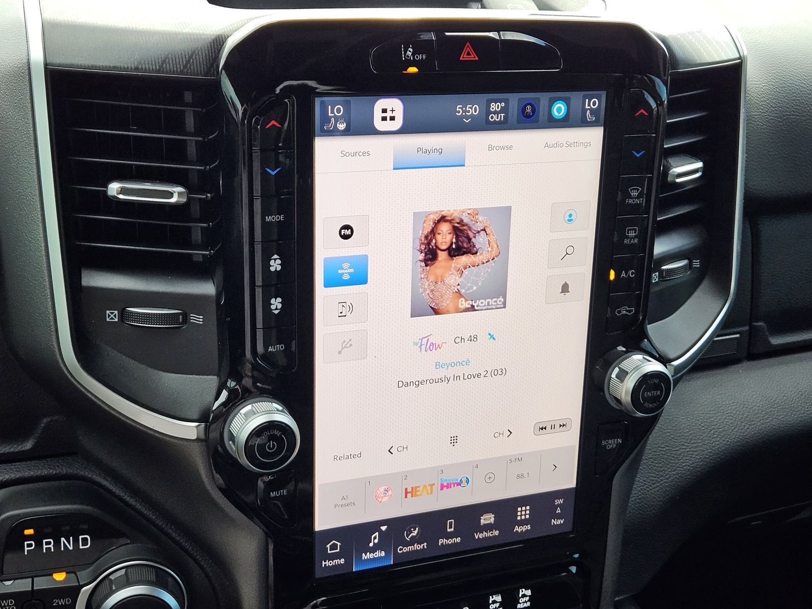 Inside, the Big Horn Level 2 Equipment Group significantly upgrades comfort and technology. Heated front seats, a heated steering wheel, dual-zone automatic temperature control, power-adjustable pedals, and an 8-way power driver seat with lumbar support create a premium driving experience. The Uconnect 5 Nav system with a 12.0-inch touchscreen provides navigation, Apple CarPlay, Google Android Auto, SiriusXM 360L, and Connected Travel and Traffic Services, all supported by a 9-amplified speaker system with subwoofer.