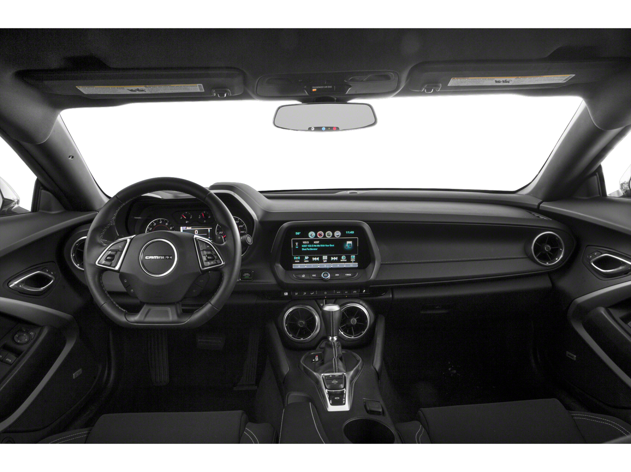 This 2018 Chevrolet Camaro 1LT in Silver Ice Metallic comes with the following features: 2.0L Turbocharged 8-Speed Automatic RWD Preferred Equipment Group 1LT, RS Package (Decklid-Mounted Lip Spoiler, High-Intensity Discharge Headlamps, LED Taillamps, and Wheels: 20 5-Split Spoke Machined-Face Aluminum), Camaro 1LT, 2D Coupe, 2.0L Turbocharged, 8-Speed Automatic, RWD, Silver Ice Metallic, Medium Ash Gray Cloth, 18 Silver-Painted Aluminum Wheels, 2 USB Ports & Auxiliary Input Jack, 4-Wheel Disc Brakes, 6 Speakers, 6-Speaker Audio System Feature, 6-Way Power Front Passenger Seat Adjuster, 8-Way Power Driver Seat Adjuster, ABS brakes, Air Conditioning, Alloy wheels, AM/FM radio: SiriusXM, Apple CarPlay/Android Auto, Automatic temperature control, Brake assist, Bumpers: body-color, Cloth Seat Trim, Compass, Delay-off headlights, Driver door bin, Driver vanity mirror, Dual front impact airbags, Dual front side impact airbags, Electronic Stability Control, Emergency communication system: OnStar Guidance, Exterior Parking Camera Rear, Four wheel independent suspension, Front anti-roll bar, Front Bucket Seats, Front Center Armrest, Front fog lights, Front License Plate Bracket, Front reading lights, Front Sport Bucket Seats, Fully automatic headlights, Illuminated entry, Knee airbag, Leather Shift Knob, Low tire pressure warning, Occupant sensing airbag, Overhead airbag, Panic alarm, Passenger door bin, Passenger vanity mirror, Power door mirrors, Power driver seat, Power passenger seat, Power steering, Power windows, Premium audio system: Chevrolet MyLink, Radio data system, Radio: AM/FM w/Chevrolet MyLink, Rear anti-roll bar, Rear window defroster, Remote keyless entry, Security system, SiriusXM Satellite Radio, Speed control, Speed-sensing steering, Steering wheel mounted audio controls, Tachometer, Telescoping steering wheel, Tilt steering wheel, Tire Inflation Kit, Traction control, Trip computer, Variably intermittent wipers, and Voltmeter.