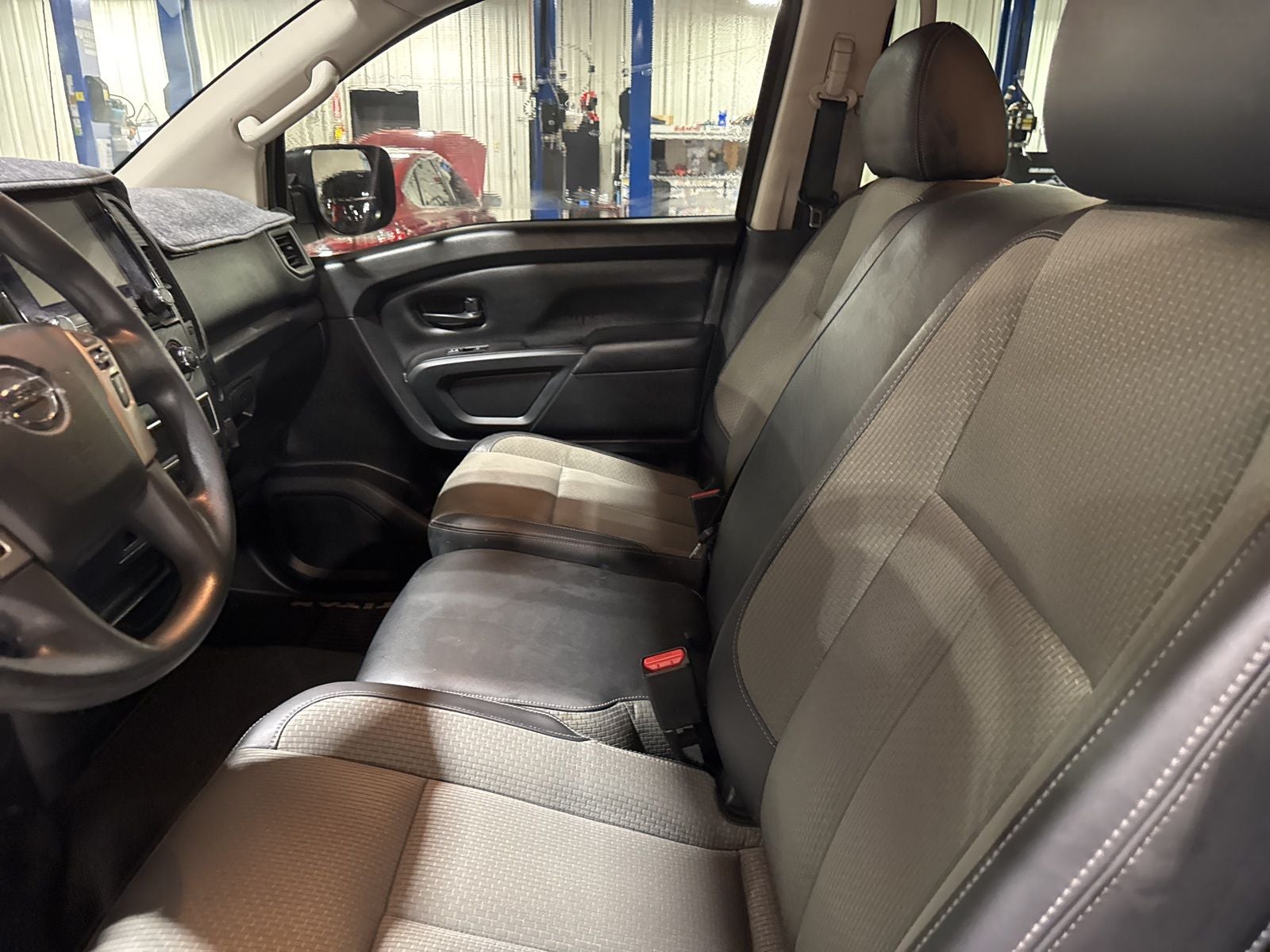 This 2020 Nissan Titan S in Red Alert comes with the following features: 5.6L V8 DOHC 32V LEV3-ULEV70 400hp 9-Speed Automatic RWD Protection Package 1, S Utility Package (Front Overhead Console), Titan S, Ford Blue Advantage: Blue Certified Certified, 4D Crew Cab, 5.6L V8 DOHC 32V LEV3-ULEV70 400hp, 9-Speed Automatic, RWD, Red Alert, Black Cloth, 3.692 Axle Ratio, 4-Wheel Disc Brakes, 6 Speakers, ABS brakes, Air Conditioning, All Season Floor Mats, AM/FM radio: SiriusXM, Auto High-beam Headlights, Blind Spot Warning, Brake assist, Cloth Seat Trim w/Vinyl Bolsters, Driver door bin, Dual front impact airbags, Dual front side impact airbags, Electronic Stability Control, Front anti-roll bar, Front Center Armrest w/Storage, Front Split Bench Seat (40/20/40), Front wheel independent suspension, Fully automatic headlights, Illuminated entry, Knee airbag, Low tire pressure warning, NissanConnect featuring Apple CarPlay and Android Auto, Occupant sensing airbag, Overhead airbag, Panic alarm, Passenger door bin, Passenger vanity mirror, Power steering, Power windows, Radio data system, Radio: NissanConnect AM/FM, Rear anti-roll bar, Rear Parking Sensors, Rear seat center armrest, Rear step bumper, Rear window defroster, Remote keyless entry, Security system, Speed control, Speed-sensing steering, Speed-Sensitive Wipers, Splash Guards, Split folding rear seat, Steering wheel mounted audio controls, Tachometer, Telescoping steering wheel, Tilt steering wheel, Traction control, Trip computer, Variably intermittent wipers, and Wheels: 18 x 8 Silver Metallic Styled Steel. Certified.