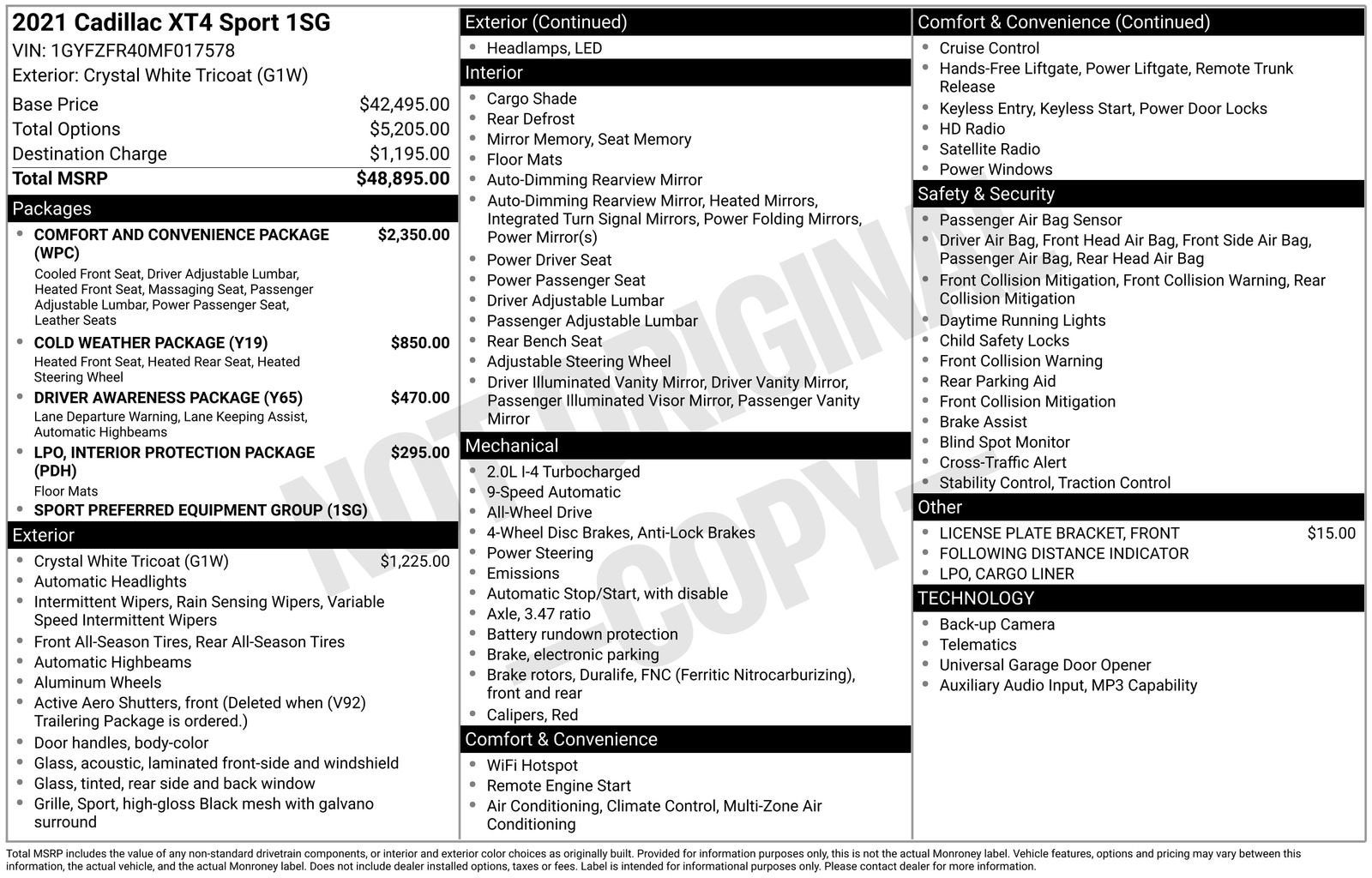 - Rear seatback upholstery: Carpet rear seatback upholstery