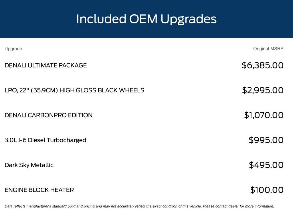 Indulge in the ultimate driving experience with the Denali's premium amenities, including the MultiPro Audio System by Kicker, heated and ventilated front seats, and a breathtaking power sunroof. The CarbonPro Composite Bed offers unparalleled durability and style, while the Denali's bold, distinctive styling commands attention on the road.