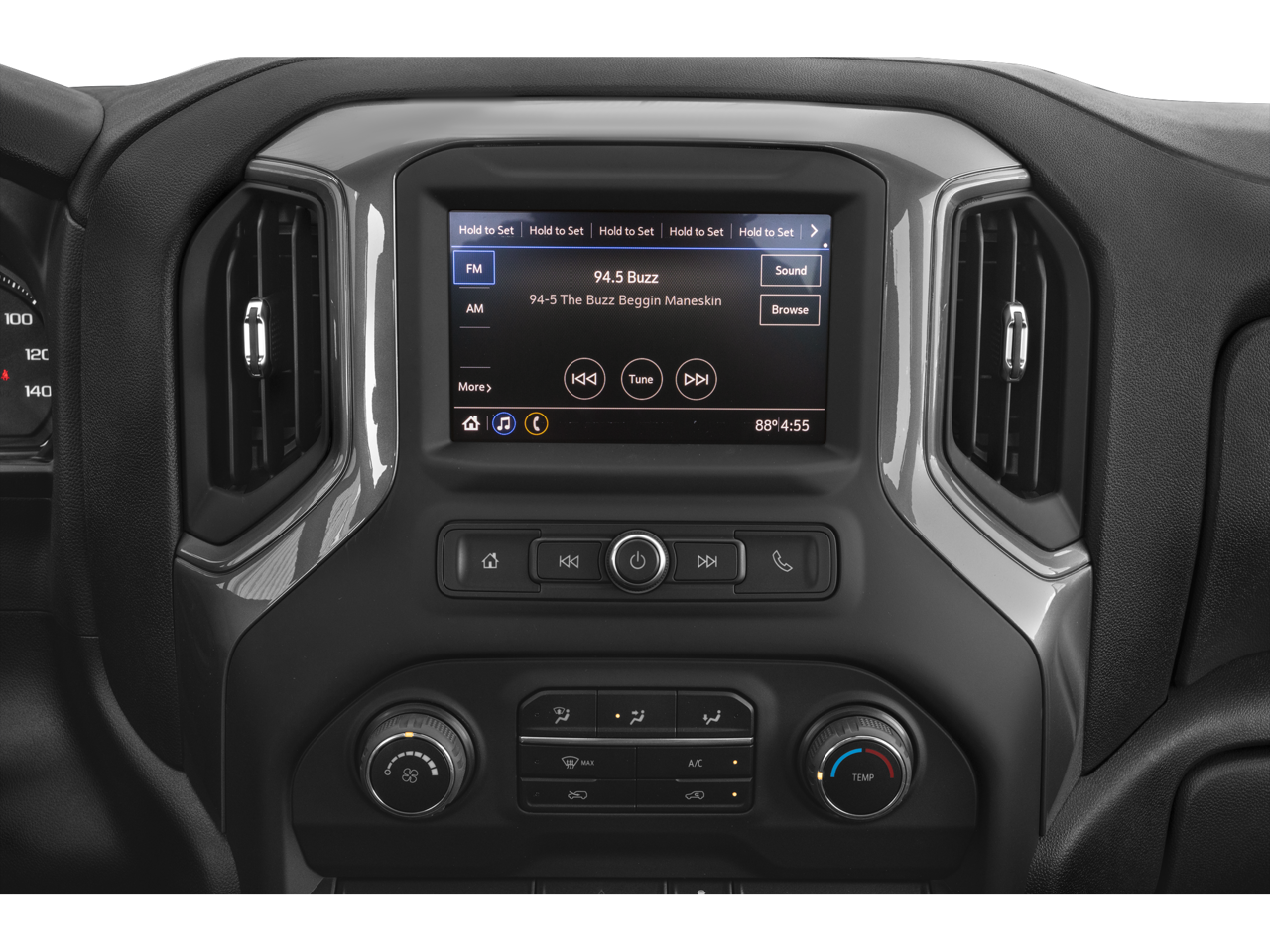 - Audio system, Chevrolet Infotainment 3 system 7" diagonal color touchscreen, AM/FM stereo. Additional features for compatible phones include: Bluetooth® audio streaming for 2 active devices, voice command pass-through to phone, wired Apple CarPlay and Android Auto capable.