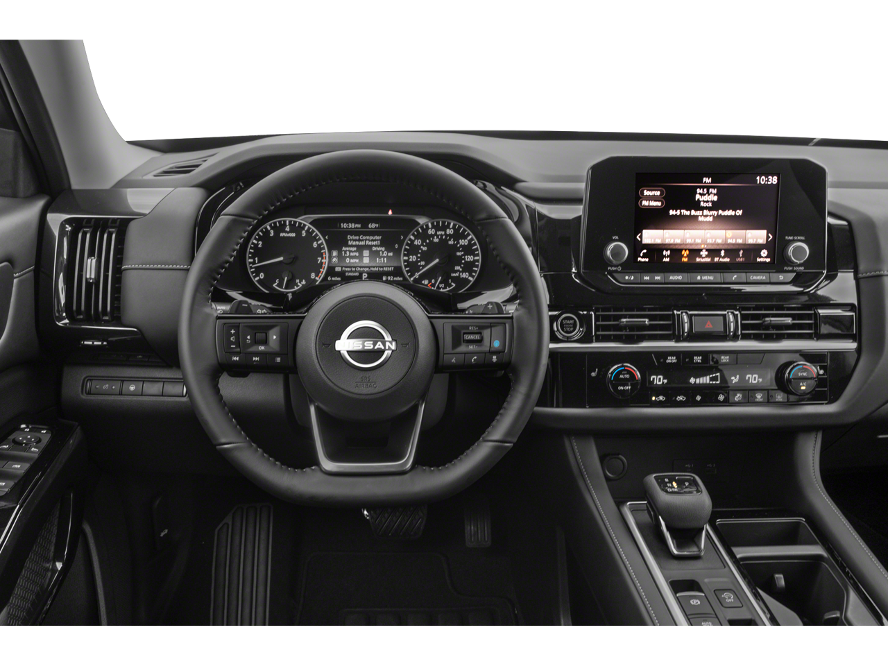 This 2023 Nissan Pathfinder SV in Gun Metallic comes with the following features: 18 Painted Alloy Wheels, 3rd row seats: bench, 4-Wheel Disc Brakes, 6 Speakers, ABS brakes, Air Conditioning, Alloy wheels, AM/FM radio: SiriusXM, Auto High-beam Headlights, Automatic temperature control, Axle Ratio: 4.334, Bench Seat Carpeted Floor Mats (Set of 4), Brake assist, Bumpers: body-color, Cloth Seating Surfaces, Delay-off headlights, Driver door bin, Driver vanity mirror, Dual front impact airbags, Dual front side impact airbags, Electronic Stability Control, Emergency communication system: NissanConnect Services, Four wheel independent suspension, Front anti-roll bar, Front Bucket Seats, Front Center Armrest, Front dual zone A/C, Front reading lights, Fully automatic headlights, Heated door mirrors, Heated Front Bucket Seats, Heated front seats, Illuminated entry, Knee airbag, Leather steering wheel, Low tire pressure warning, NissanConnect featuring Apple CarPlay and Android Auto, Occupant sensing airbag, Outside temperature display, Overhead airbag, Overhead console, Panic alarm, Passenger door bin, Passenger vanity mirror, Power door mirrors, Power driver seat, Power steering, Power windows, Radio data system, Radio: AM/FM Audio System w/NissanConnect, Rear air conditioning, Rear anti-roll bar, Rear Parking Sensors, Rear reading lights, Rear seat center armrest, Rear side impact airbag, Rear window defroster, Rear window wiper, Reclining 3rd row seat, Remote keyless entry, Security system, Speed control, Speed-sensing steering, Split folding rear seat, Spoiler, Steering wheel mounted audio controls, Tachometer, Telescoping steering wheel, Tilt steering wheel, Traction control, Trip computer, Turn signal indicator mirrors, and Variably intermittent wipers. 20/27 City/Highway MPG