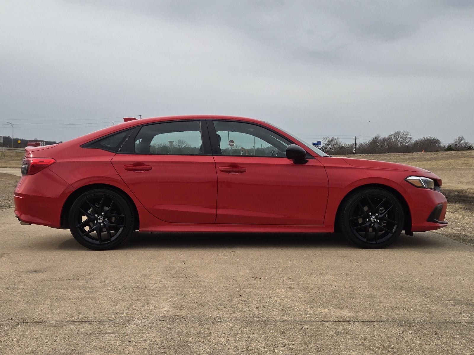 This 2024 Honda Civic Sport in Rallye Red comes with the following features: 2.0L I4 DOHC 16V i-VTEC CVT FWD Black Artificial Leather, 4-Wheel Disc Brakes, 8 Speakers, ABS brakes, Adaptive Cruise Control: Adaptive Cruise Control (ACC) with Low-Speed Follow, Air Conditioning, Alloy wheels, AM/FM radio, Apple CarPlay/Android Auto, Auto High-beam Headlights, Automatic temperature control, Brake assist, Bumpers: body-color, Cloth/Leatherette Seating Surfaces, Delay-off headlights, Driver door bin, Driver vanity mirror, Dual front impact airbags, Dual front side impact airbags, Electronic Stability Control, Emergency communication system: HondaLink, Exterior Parking Camera Rear, Four wheel independent suspension, Front anti-roll bar, Front Bucket Seats, Front Center Armrest, Front reading lights, Fully automatic headlights, Illuminated entry, Knee airbag, Leather Shift Knob, Leather steering wheel, Low tire pressure warning, Occupant sensing airbag, Outside temperature display, Overhead airbag, Panic alarm, Passenger door bin, Passenger vanity mirror, Power door mirrors, Power steering, Power windows, Radio data system, Radio: 180-Watt Audio System, Rear anti-roll bar, Rear side impact airbag, Rear window defroster, Remote keyless entry, Security system, Speed control, Speed-sensing steering, Steering wheel mounted audio controls, Tachometer, Telescoping steering wheel, Tilt steering wheel, Traction control, Trip computer, and Wheels: 18 Gloss Black Alloy. 30/37 City/Highway MPG