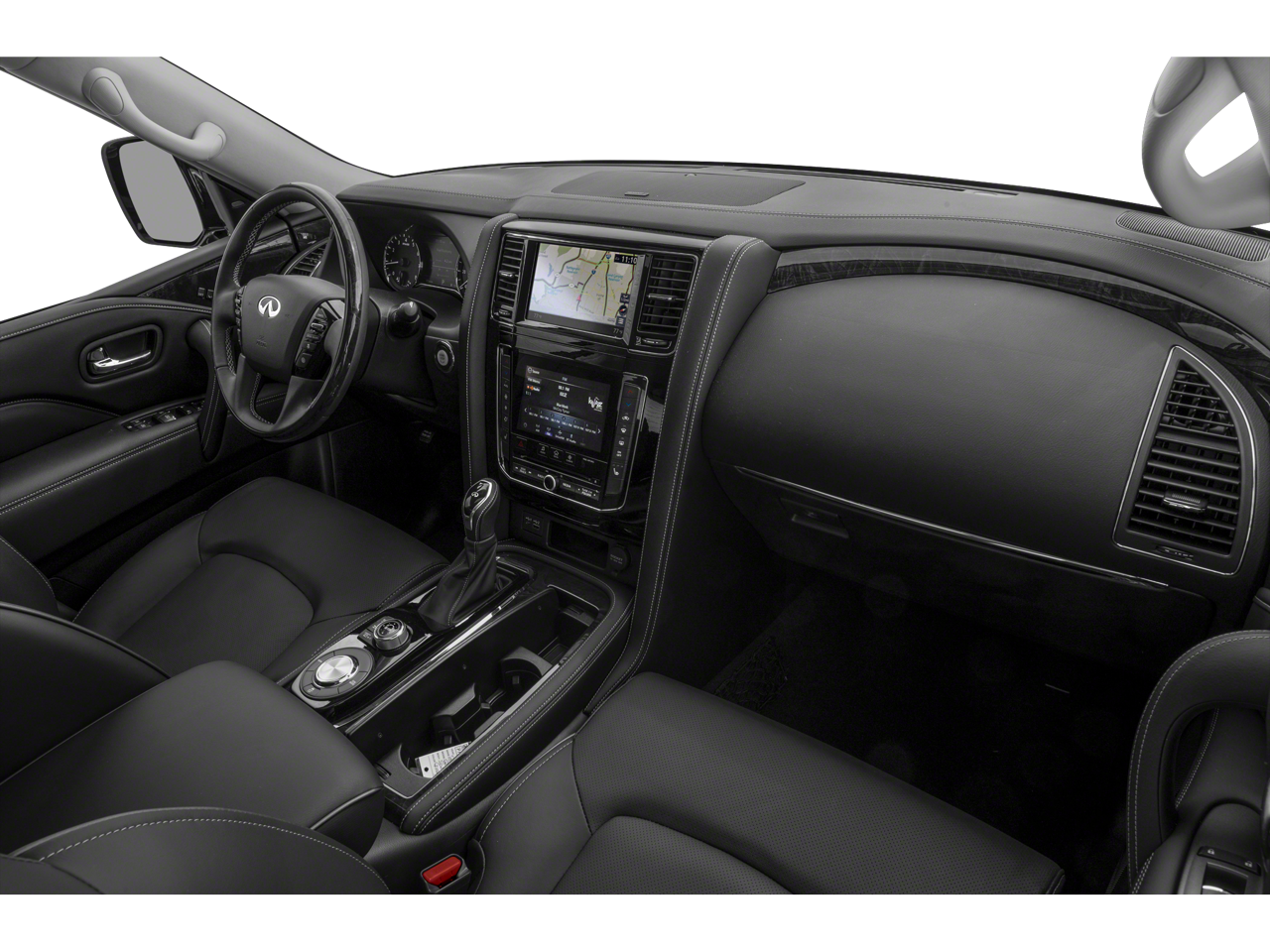 - Radio: Bose Premium Audio System w/13 Speakers -inc: driver's audio stage, speed-sensitive volume control, INFINITI InTouch 12.3" interactive display, INFINITI InTouch services (1-year premium trial and 5-year select trial), INFINITI navigation w/lane guidance and 3D building graphics, MapCare w/over-the-air update compatibility (5-year trial period), premium traffic w/live traffic information (5-year trial period), TomTom weather (5-year trial period), HD radio technology, Apple CarPlay w/wireless Apple CarPlay integration, Android Auto, Siri Eyes Free, Wi-Fi hotspot (30-day or 1GB trial, whichever comes first), Alexa built-in, SiriusXM radio (3-month trial period), SiriusXM Traffic (3-month trial period), SiriusXM Travel Link (3-month trial period): weather, fuel prices, stock prices, sports scores, movie listings and parking, over-the-air head unit update capability (5-year trial period), INFINITI Voice recognition for audio, navigation, Bluetooth® and vehicle information, Bluetooth® hands-free phone system and streaming audio, hands-free text messaging assistant, 2x USB ports for compatible devices for audio streaming and wireless phone charger