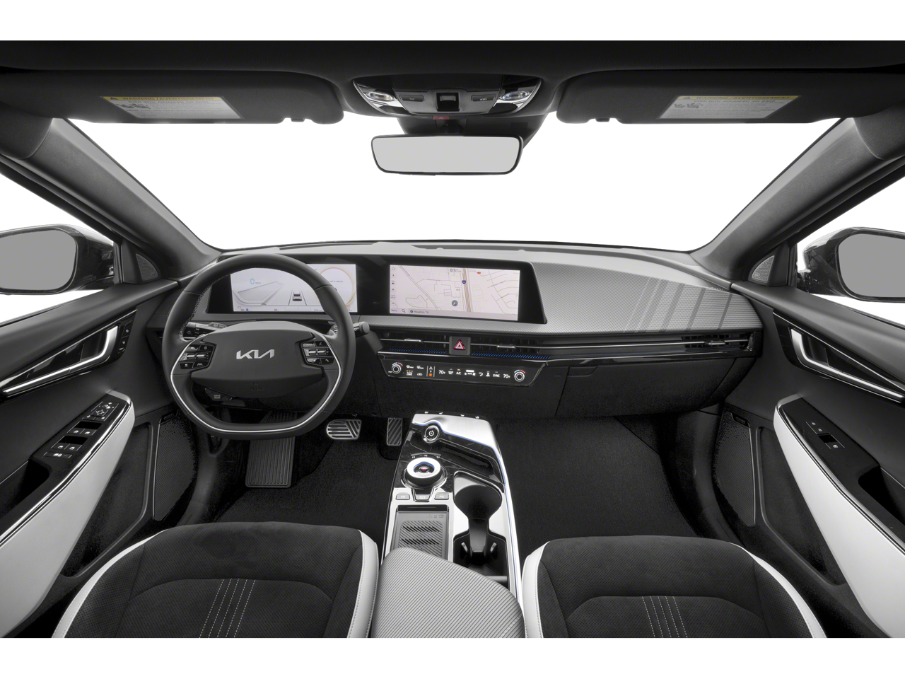 This 2024 Kia EV6 GT-Line comes nicely equipped with the following 14 Speakers, 4-Wheel Disc Brakes, ABS brakes, Air Conditioning, Alloy wheels, AM/FM radio: SiriusXM, Apple CarPlay & Android Auto, Auto High-beam Headlights, Auto-dimming Rear-View mirror, Automatic temperature control, Axle Ratio: 10.650, Brake assist, Bumpers: body-color, Cargo Cover, Cargo Mat w/Luggage Board, Carpet Floor Mats, Delay-off headlights, Driver door bin, Driver vanity mirror, Dual front impact airbags, Dual front side impact airbags, Electronic Stability Control, Emergency communication system, Four wheel independent suspension, Front anti-roll bar, Front Bucket Seats, Front Center Armrest, Front dual zone A/C, Front reading lights, Fully automatic headlights, Garage door transmitter: HomeLink, Heads-Up Display, Heated & Ventilated Front Seats (3-Stage), Heated door mirrors, Heated front seats, Heated rear seats, Heated steering wheel, Illuminated entry, Knee airbag, Low tire pressure warning, Memory seat, Navigation system: AVN 5.0 Navigation System, Occupant sensing airbag, Outside temperature display, Overhead airbag, Overhead console, Panic alarm, Passenger door bin, Passenger vanity mirror, Power door mirrors, Power driver seat, Power Liftgate, Power moonroof, Power passenger seat, Power steering, Power windows, Radio: Meridian Premium Audio System, Rain sensing wipers, Rear anti-roll bar, Rear seat center armrest, Rear window defroster, Remote keyless entry, Security system, Speed control, Speed-sensing steering, Split folding rear seat, Spoiler, Sport steering wheel, Steering wheel mounted audio controls, Telescoping steering wheel, Tilt steering wheel, Traction control, Trip computer, Turn signal indicator mirrors, Variably intermittent wipers, Vegan Leather Seat Trim, Ventilated front seats, and Wheels: 8.0J x 20 Black Painted Alloy. 106/86 City/Highway MPG