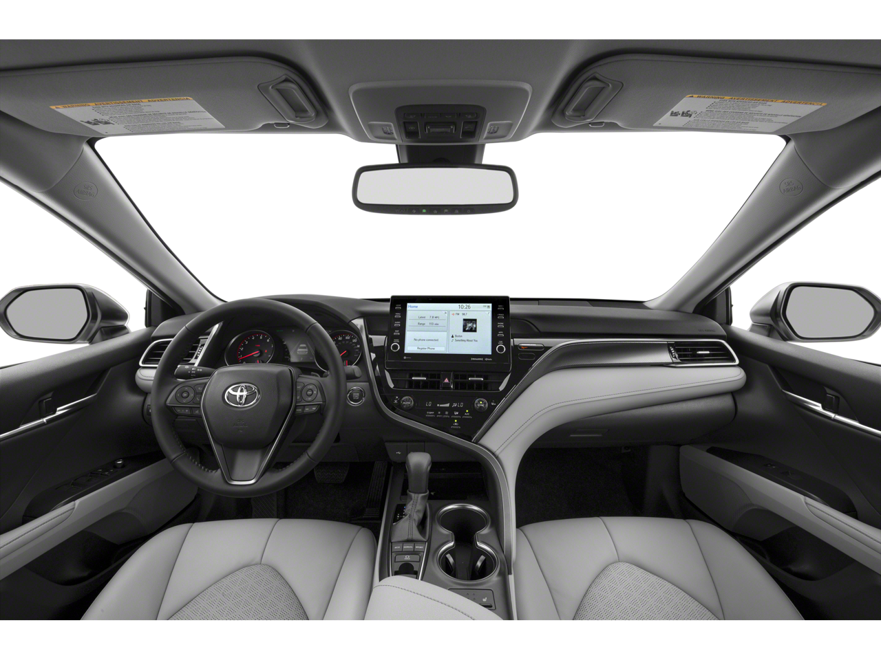 This 2024 Toyota Camry XSE in White comes with the following features: 2.5L I4 DOHC 16V 8-Speed Automatic FWD Black Leather, 4-Wheel Disc Brakes, 6 Speakers, ABS brakes, Air Conditioning, Alloy wheels, AM/FM radio: SiriusXM, Apple CarPlay/Android Auto, Auto High-beam Headlights, Auto-dimming Rear-View mirror, Automatic temperature control, Brake assist, Bumpers: body-color, Delay-off headlights, Driver door bin, Driver vanity mirror, Dual front impact airbags, Dual front side impact airbags, Electronic Stability Control, Emergency communication system: Safety Connect (1-year trial), Exterior Parking Camera Rear, Four wheel independent suspension, Front anti-roll bar, Front Bucket Seats, Front Center Armrest, Front dual zone A/C, Front reading lights, Fully automatic headlights, Garage door transmitter: HomeLink, Heated door mirrors, Heated front seats, Illuminated entry, Knee airbag, Leather steering wheel, Low tire pressure warning, Multi-Stage Heated Front Bucket Seats, Occupant sensing airbag, Outside temperature display, Overhead airbag, Overhead console, Panic alarm, Passenger door bin, Passenger vanity mirror, Perforated Leather Seat Trim, Power door mirrors, Power driver seat, Power passenger seat, Power steering, Power windows, Radio data system, Radio: Audio Plus, Rear anti-roll bar, Rear reading lights, Rear seat center armrest, Rear side impact airbag, Rear window defroster, Remote keyless entry, Security system, Speed control, Speed-sensing steering, Split folding rear seat, Spoiler, Steering wheel mounted audio controls, Tachometer, Telescoping steering wheel, Tilt steering wheel, Traction control, Trip computer, Turn signal indicator mirrors, Variably intermittent wipers, and Wheels: 19 x 8J Alloy.