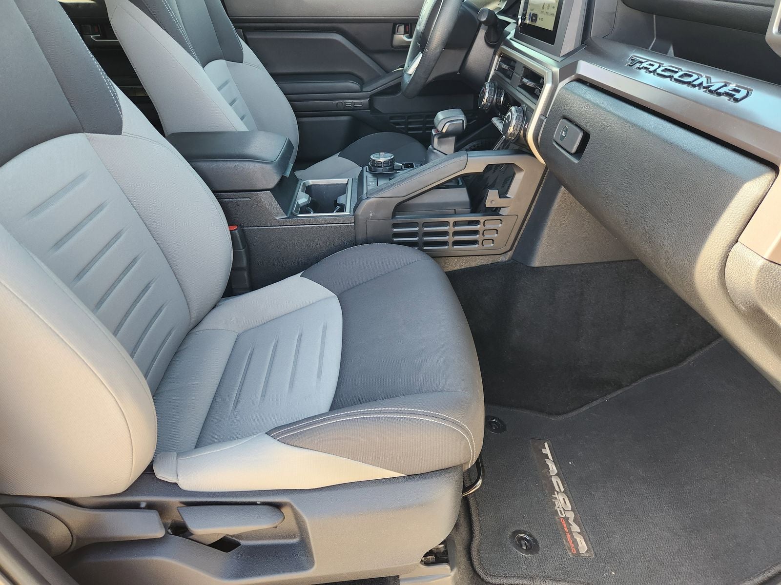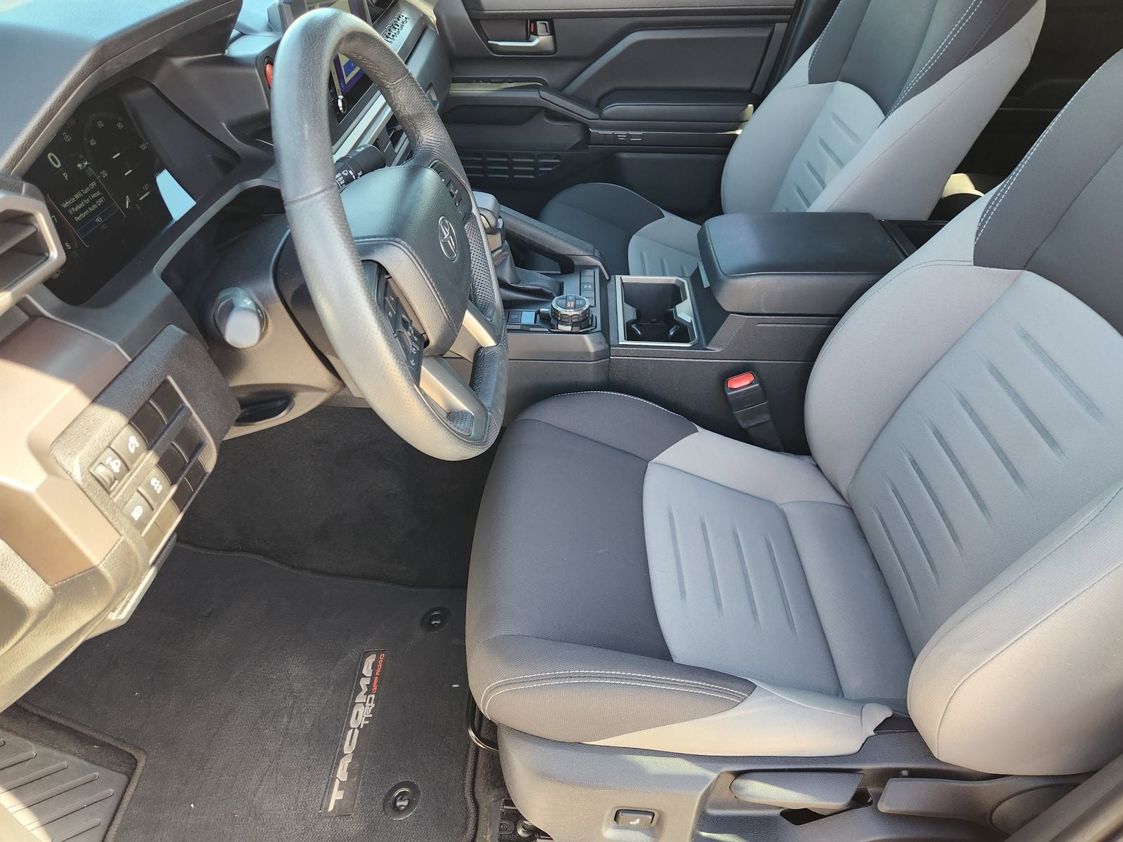 This 2024 Toyota Tacoma TRD Off-Road in Celestial Silver Metallic comes with the following features: 2.4L 4-Cylinder 8-Speed Automatic 4WD 4WD, ABS brakes, Alloy wheels, Electronic Stability Control, Heated door mirrors, Illuminated entry, Low tire pressure warning, Remote keyless entry, Traction control, 3.583 Axle Ratio, 4-Wheel Disc Brakes, 6 Speakers, Air Conditioning, AM/FM radio: SiriusXM, Anti-whiplash front head restraints, Apple CarPlay/Android Auto, Auto High-beam Headlights, Auto-dimming Rear-View mirror, Automatic temperature control, Brake assist, Bumpers: body-color, Driver door bin, Driver vanity mirror, Dual front impact airbags, Dual front side impact airbags, Emergency communication system: Safety Connect (1-year trial), Exterior Parking Camera Rear, Fabric Seat Trim (FD), Four wheel independent suspension, Front anti-roll bar, Front Bucket Seats, Front Center Armrest, Front fog lights, Front reading lights, Fully automatic headlights, Knee airbag, Leather Shift Knob, Leather steering wheel, Occupant sensing airbag, Outside temperature display, Overhead airbag, Overhead console, Panic alarm, Passenger door bin, Passenger vanity mirror, Power door mirrors, Power steering, Power windows, Radio: 8 Toyota Audio Multimedia, Rear step bumper, Rear window defroster, Security system, Speed control, Speed-sensing steering, Split folding rear seat, Steering wheel mounted audio controls, Tachometer, Telescoping steering wheel, Tilt steering wheel, Trip computer, Turn signal indicator mirrors, Variably intermittent wipers, and Wheels: 17 TRD Off-Road Alloy.