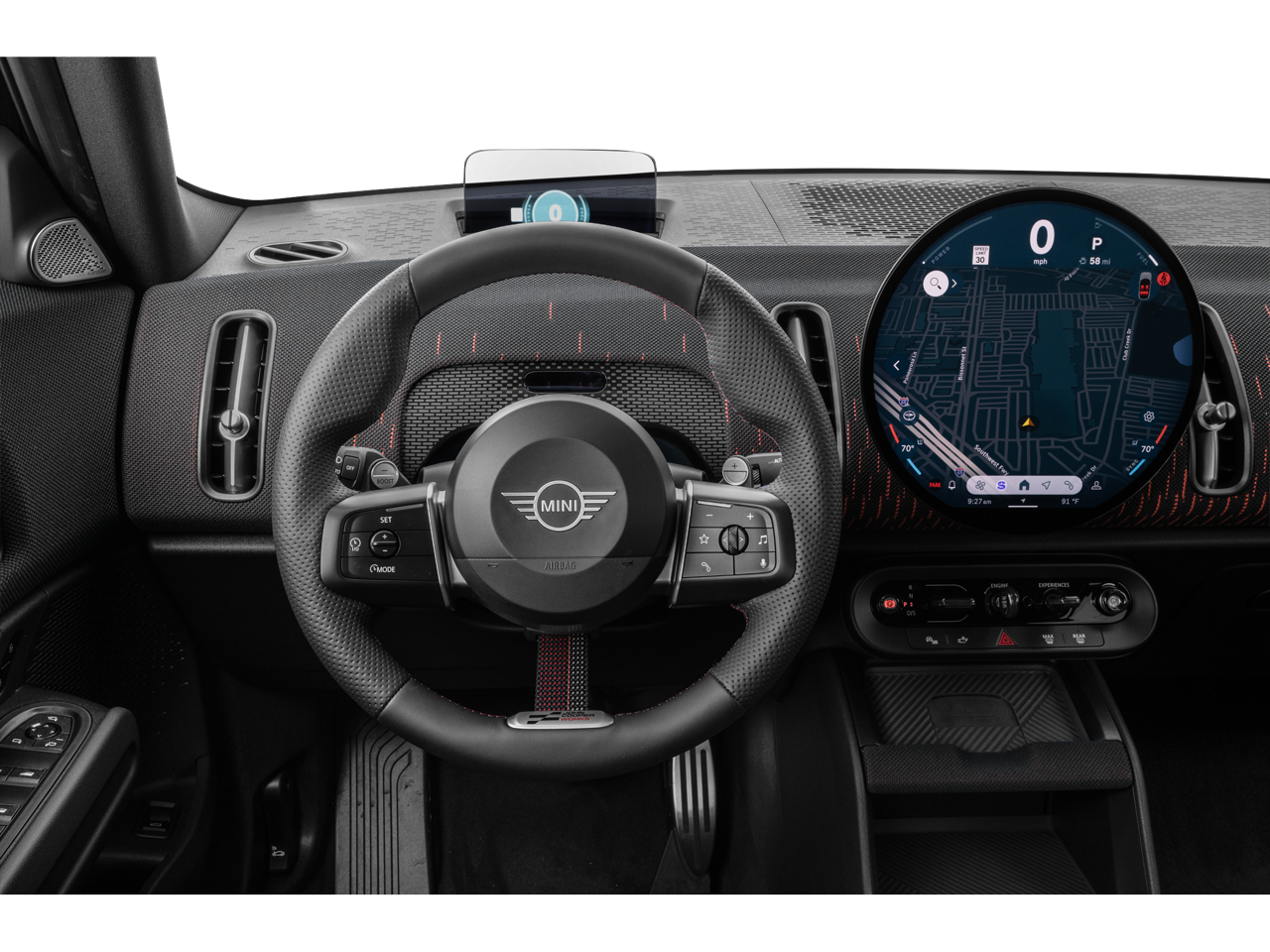 This 2025 MINI John Cooper Works Countryman comes nicely equipped with the following Comfort Package Plus (Auto-Dimming Interior and Exterior Mirrors, Auto-Dimming Rear-View Mirror, Comfort Access Keyless Entry, MINI Navigation AR, Parking Assistant Plus, and Wireless Device Charging), Iconic Trim (Active Driver Seat with Lumbar Support, Interior Camera, Power Front Seats, and Privacy Glass), 12 Speakers, 4-Wheel Disc Brakes, ABS brakes, Adaptive suspension, Advanced Real-Time Traffic Information, Air Conditioning, Alloy wheels, AM/FM Radio, AM/FM radio: SiriusXM, Apple CarPlay Compatibility, Auto High-beam Headlights, Auto-dimming door mirrors, Auto-dimming Rear-View mirror, Automatic temperature control, Black Roof and Mirror Caps, Brake assist, Bumpers: body-color, Delay-off headlights, Driver door bin, Driver vanity mirror, Dual front impact airbags, Dual front side impact airbags, Dynamic Damper Control, Electronic Stability Control, Emergency communication system: MINI Assist eCall, Exterior Parking Camera Rear, Four wheel independent suspension, Front anti-roll bar, Front Bucket Seats, Front Center Armrest, Front dual zone A/C, Front reading lights, Fully automatic headlights, Harman/Kardon Surround Sound System, harman/kardon® Speakers, Heads-Up Display, Heated Front Seats, Heated front seats, Heated steering wheel, Illuminated entry, John Cooper Works Sport Seats, Knee airbag, Low tire pressure warning, MINI Assist ECall, MINI Connected, MINI Navigation, MINI TeleServices, Navigation System, Occupant sensing airbag, Outside temperature display, Overhead airbag, Overhead console, Panic alarm, Passenger door bin, Passenger vanity mirror, Power door mirrors, Power Liftgate, Power moonroof, Power steering, Power windows, Radio data system, Rear anti-roll bar, Rear seat center armrest, Rear window defroster, Rear window wiper, Remote keyless entry, Security system, Sirius XM Satellite Radio, Speed control, Speed-sensing steering, Speed-Sensitive Wipers, Split folding rear seat, Spoiler, Sport steering wheel, Steering wheel mounted audio controls, Tachometer, Telescoping steering wheel, Tilt steering wheel, Traction control, Trip computer, Variably intermittent wipers, Vescin/Cord Upholstery, Wheels: 19 John Cooper Works Runway Spoke Black, and Wheels: 19 x 8.0 John Cooper Works Runway Spoke Black. 23/30 City/Highway MPG